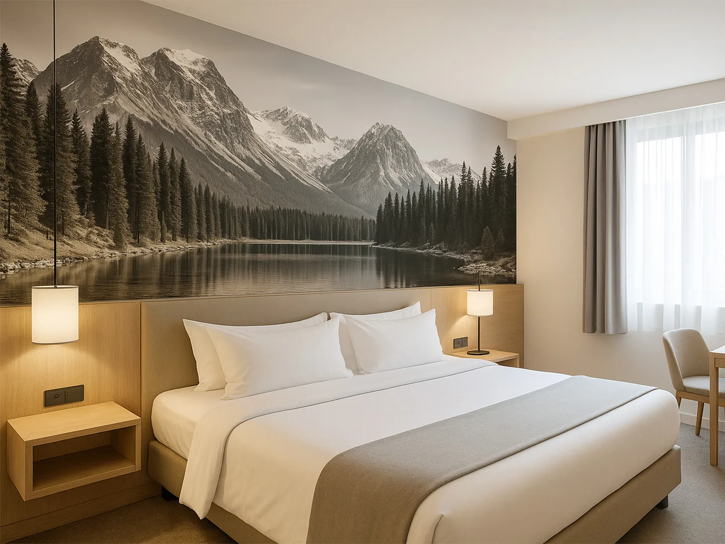 Carta da parati personalizzata con stampa su misura e applicazione professionale per hotel, ristoranti e locali.